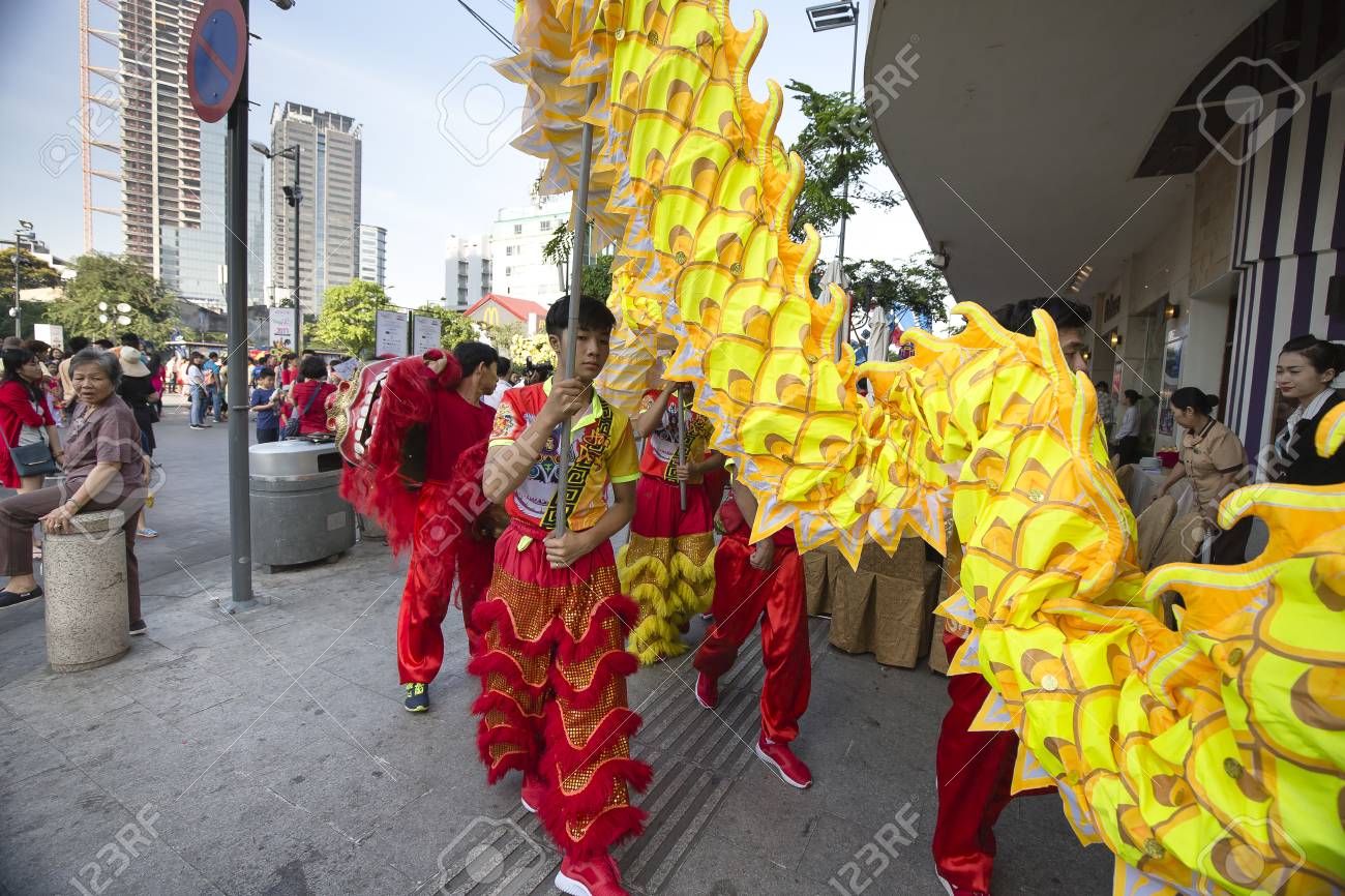Immagini Stock Citta Di Ho Chi Minh Vietnam 28 Gennaio 17 Dancing Dell Unicorno Sulla Via Di Camminata Di Nguyen Hue Citta Di Ho Chi Minh Vietnam Al Nuovo Anno Lunare