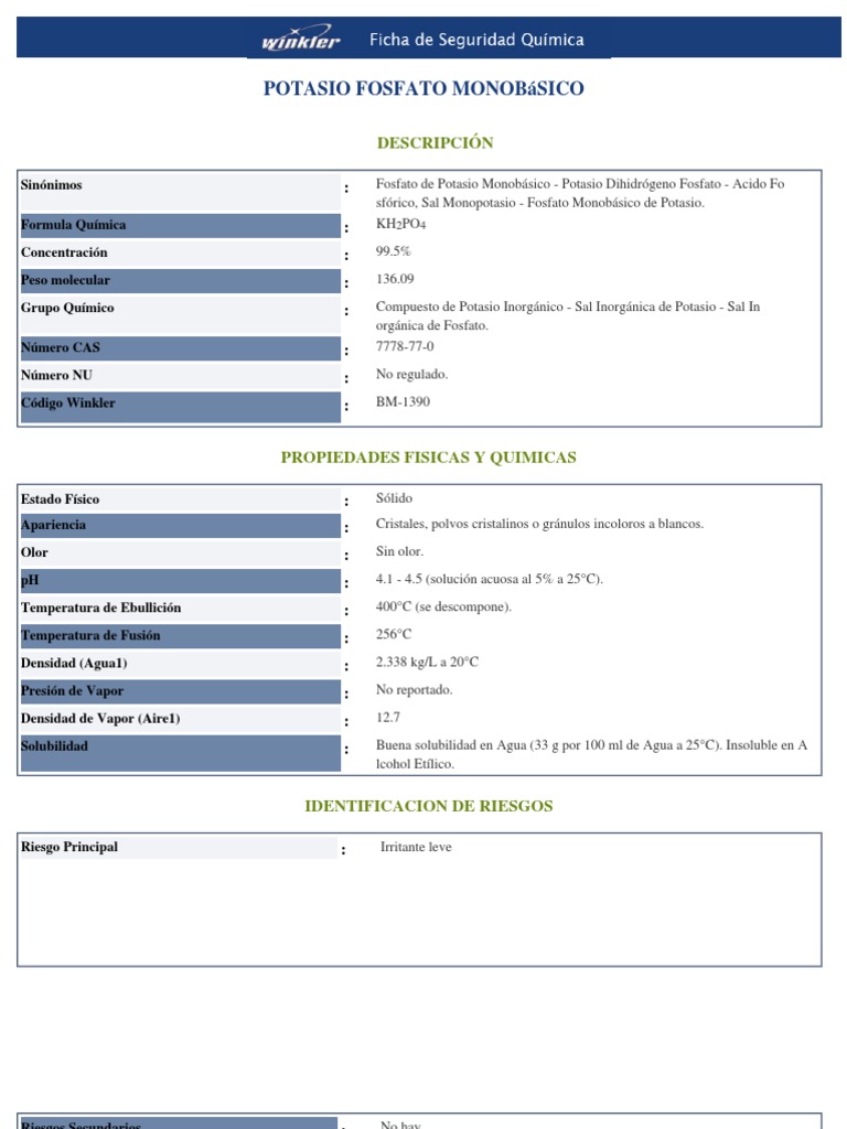 Ficha Fosfato Potasio Monobasico Potasio Dieta Y Nutricion