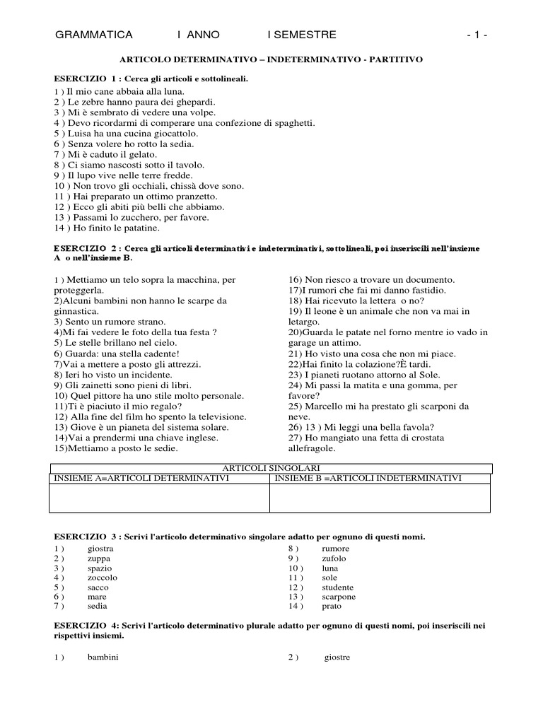 Articoli Determinativi Articoli Indeterminativi Articoli Partitivi Gli Articoli Determinativi Sono Pdf Download Gratuito