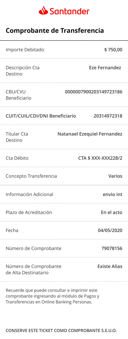 Como Descargo El Comprobante De Transferencia De Santander Paganza