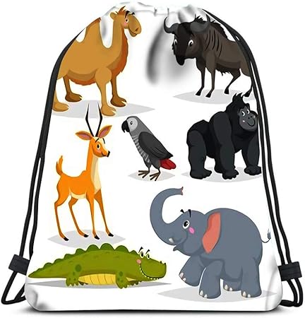 Georgoakunk Zaino Borsa Con Coulisse Animali Africani Cartone Animato Scimmia Gorilla Scimmia Grigia Pappagallo Elefante Gazzella Antilope Coccodrillo Bactriano Regalo Di Natale Amazon It Sport E Tempo Libero