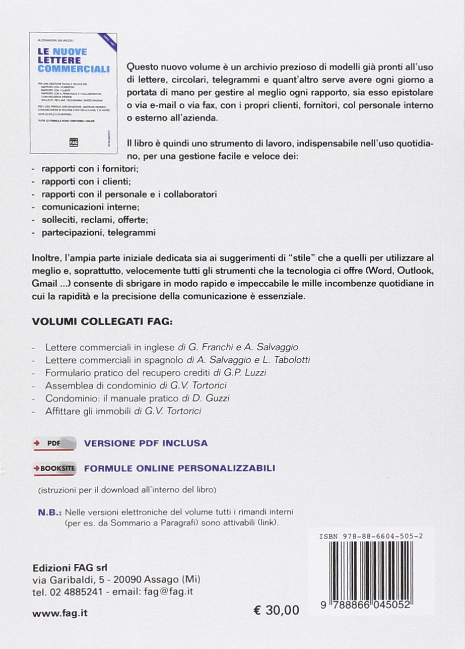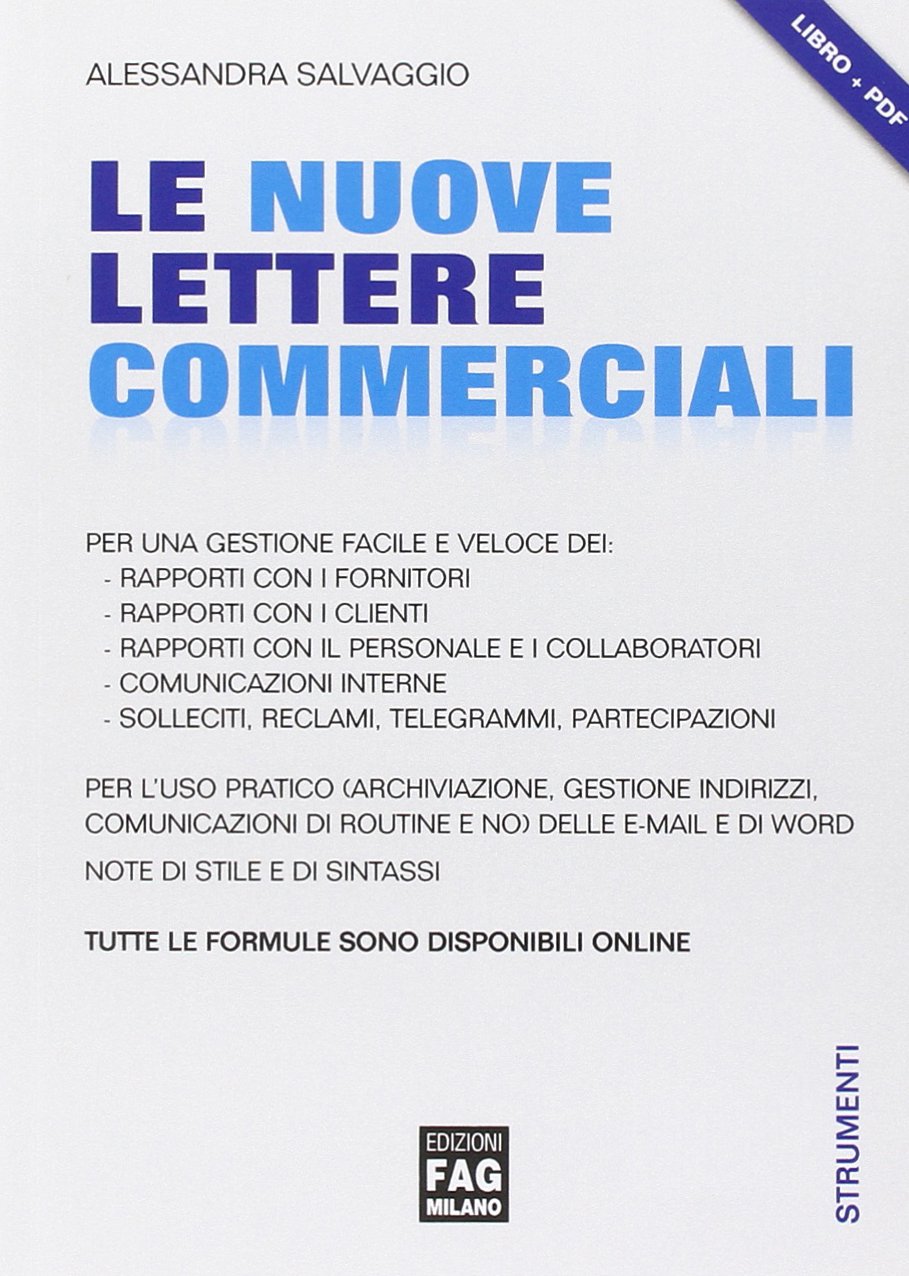 Lettere Commerciali In Inglese Pdf è un libro di Salvaggio Alessandra, D'urso Francesca edito da Fag a aprile 19 EAN puoi acquistarlo sul sito HOEPLIit, la grande libreria online. La lettera commerciale in lingua Come devono essere impostate le lettere commerciali per essere professionali, cortesi e efficaci nelle diverse lingue europee, le formule più frequentemente utilizzate. Ormai la maggior parte dei messaggi quotidiani avvengono via email o al telefonoIn ambito lavorativo, dato che oggigiorno scriviamo poche lettere, tendiamo a usarle solo per le comunicazioni più importanti, il che significa che la capacità di scrivere lettere commerciali efficaci è ancora.