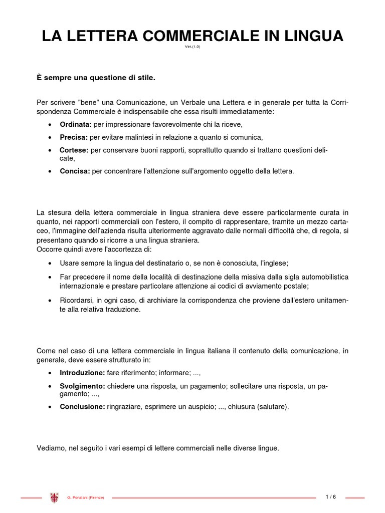 La Lettera Commerciale In Lingua Ver 1 0 Pdf Free Download