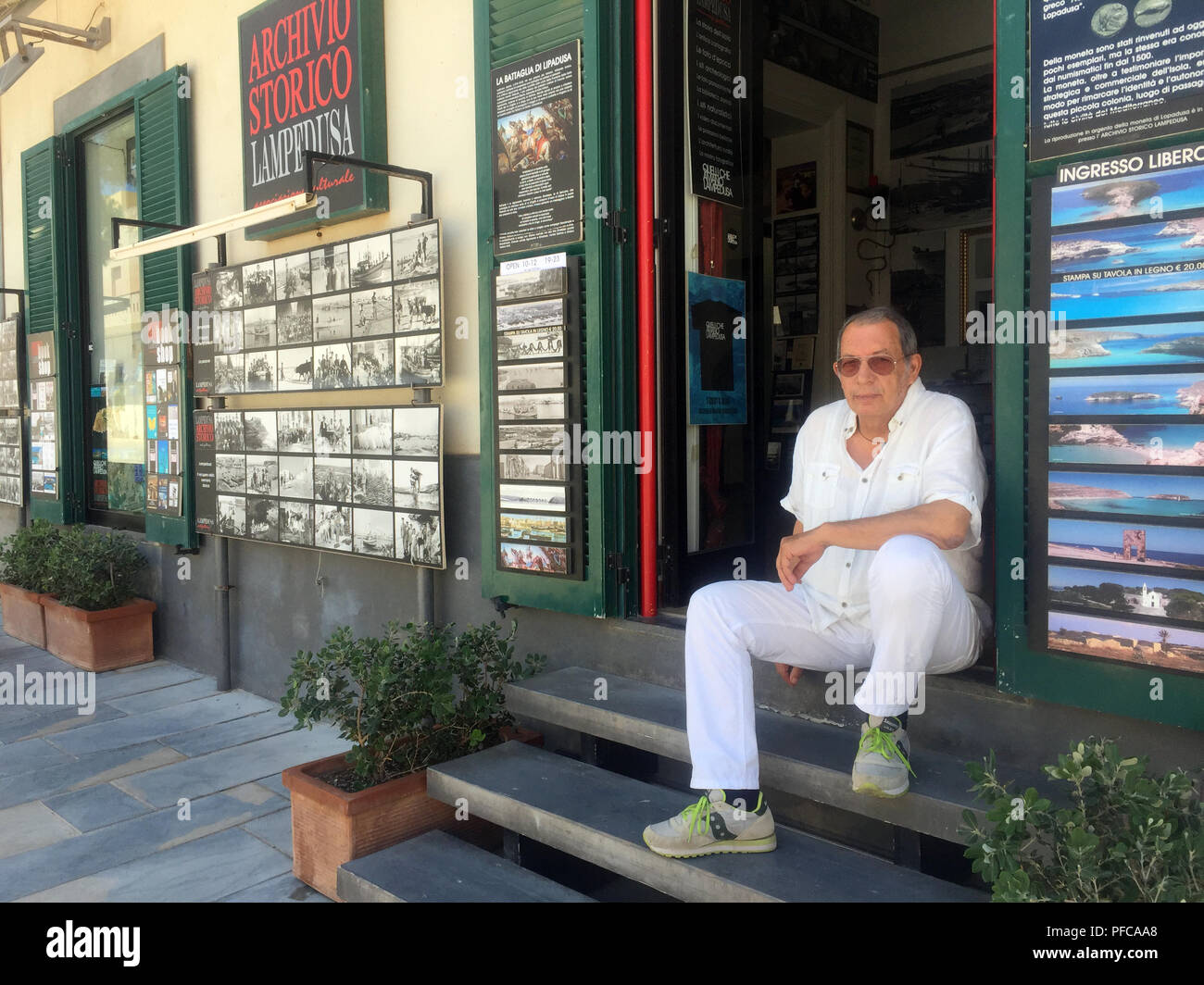 Lampedusa Italy 11th July 18 Antonino Taranto Sits In Front Of His Historical Archive On The Italian Island More And More Tourists Come To The Island There Are Hardly Any Refugees Left