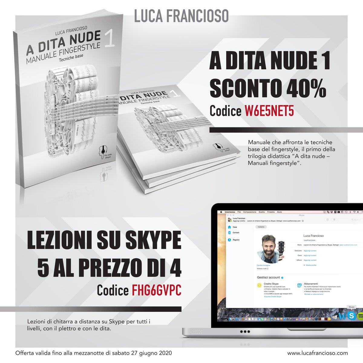 Luca Francioso Da Oggi E Fino Alla Mezzanotte Di Sabato 27 Giugno Potrai Acquistare Il Manuale A Dita Nude 1 Manuale Fingerstyle Tecniche Base Con Uno Sconto Del 40