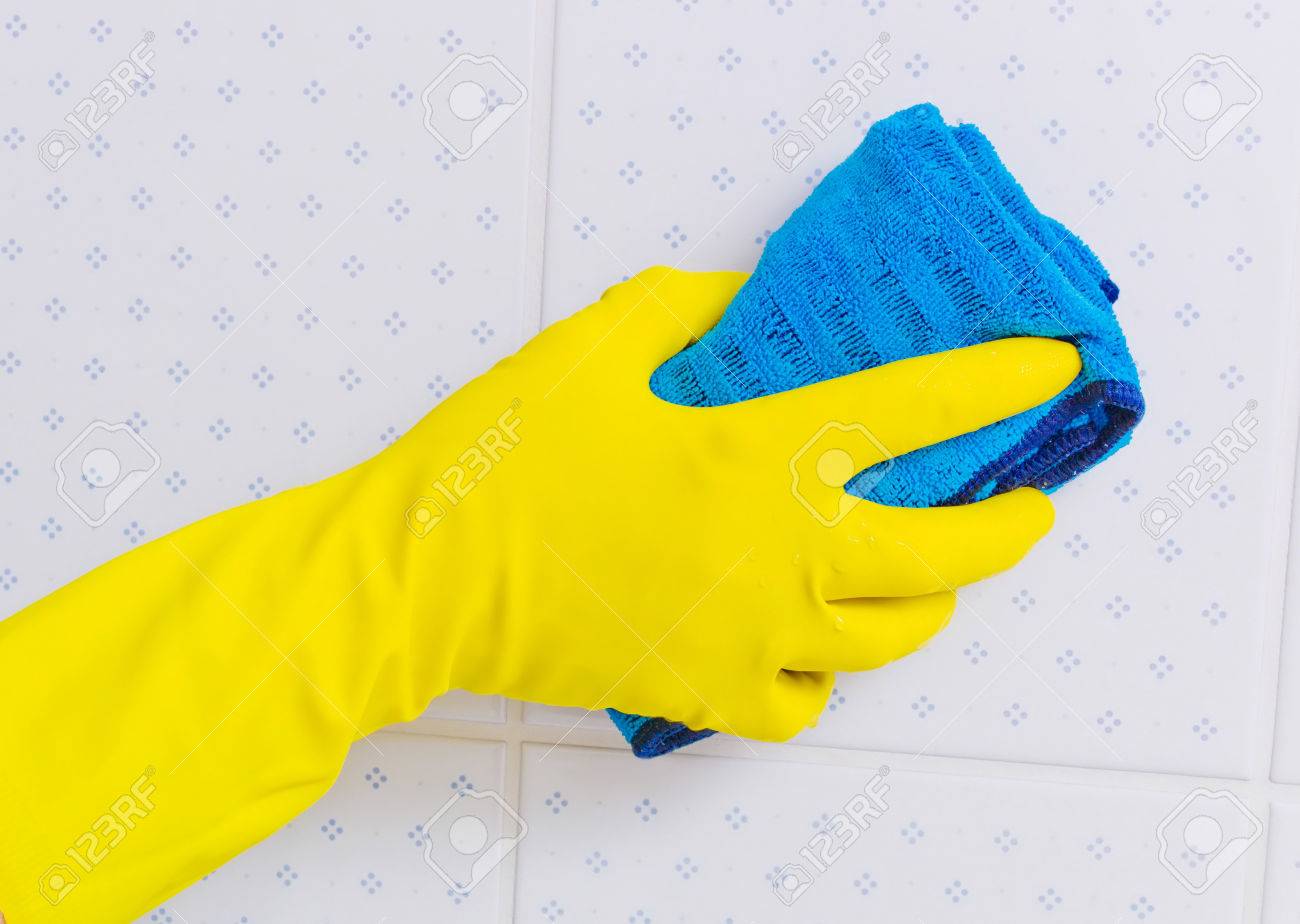 Immagini Stock Le Tessere Di Un Bagno E Pulito Con Guanti Di Lattice Image