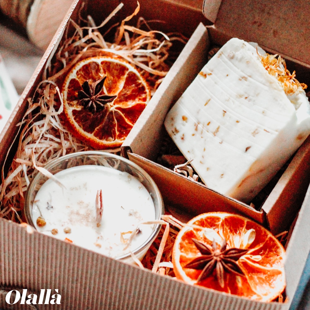 Gift Box Con Candela E Sapone Artigianali Realizzati Con Fiori E Spezie Idea Regalo Natale Olalla
