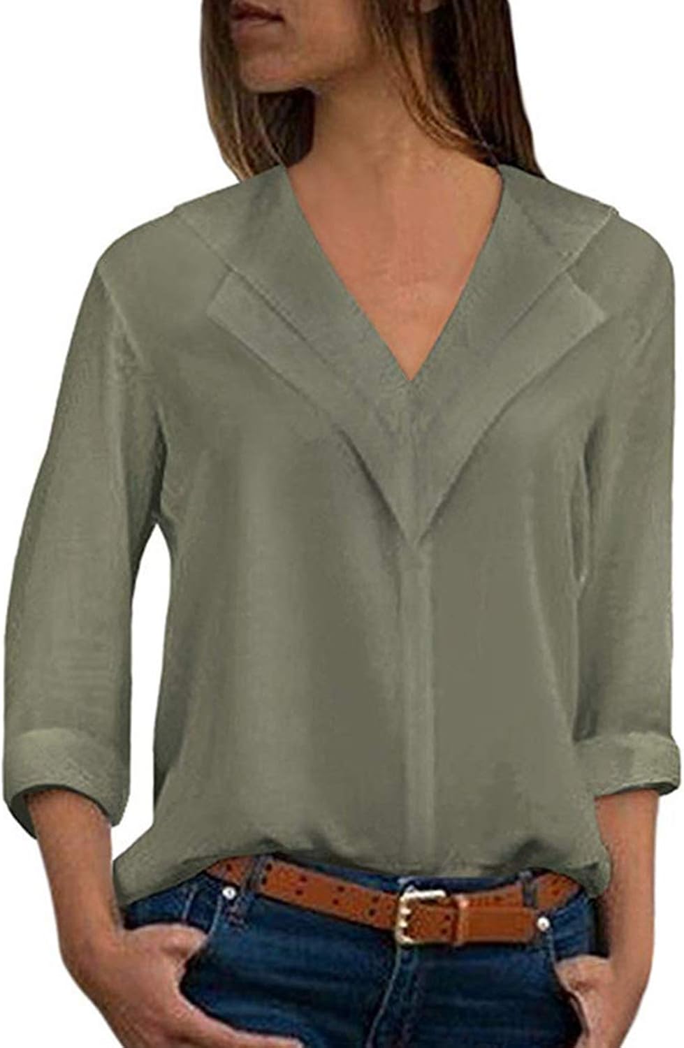Camicetta Chiffon Maniche Lunghe Moda Blusa Scollo V Coreana Pullover Donna Inverno Autunno Maglietta Fantasia Ragazza Felpa Primavera Estiva Tunica lie Forti Camicia Ufficio Maglia Top Tinta Unita Abbigliamento Polo