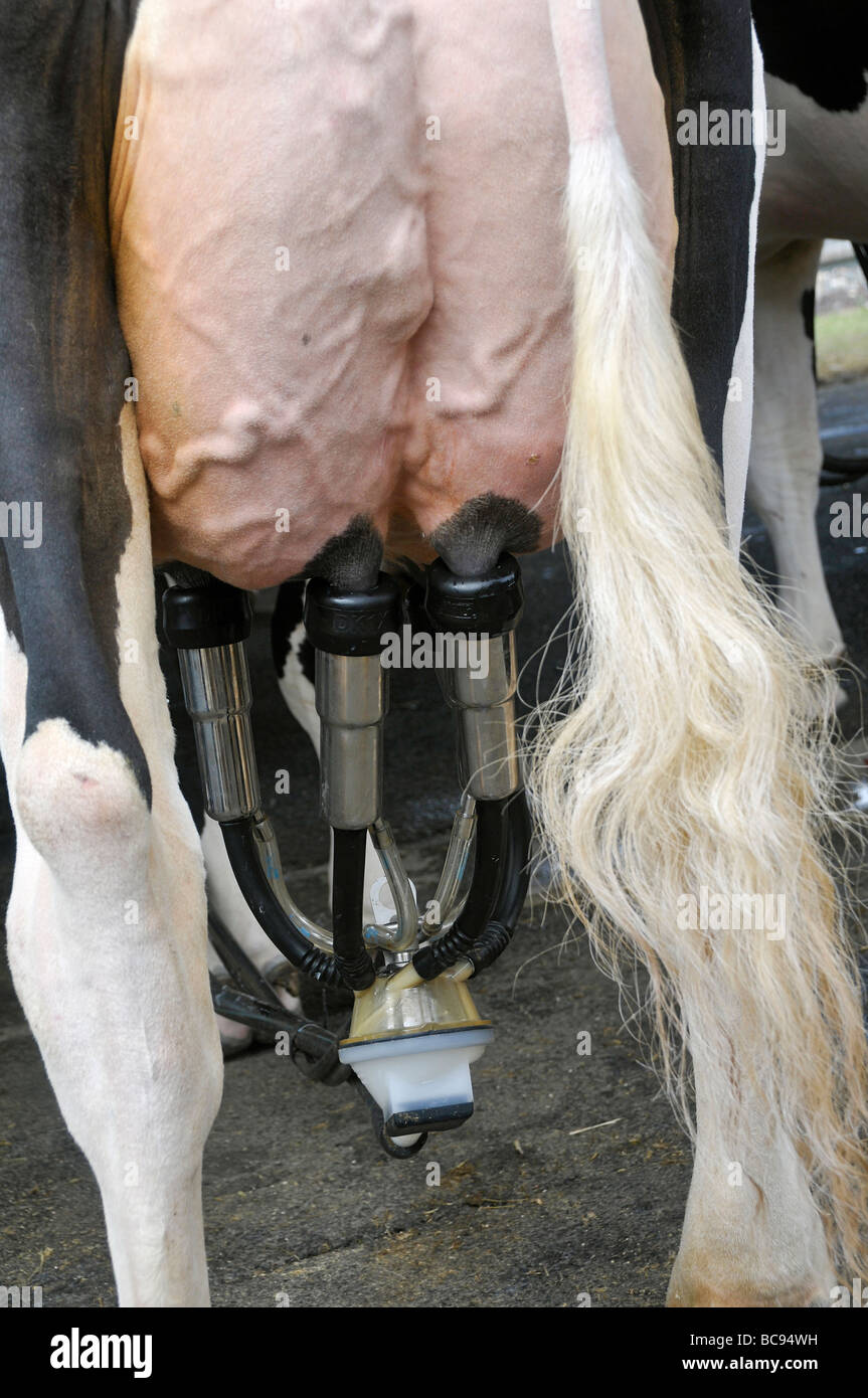 Close Up Sulla Mammella Della Mucca E La Macchina Per La Mungitura Foto Stock Alamy