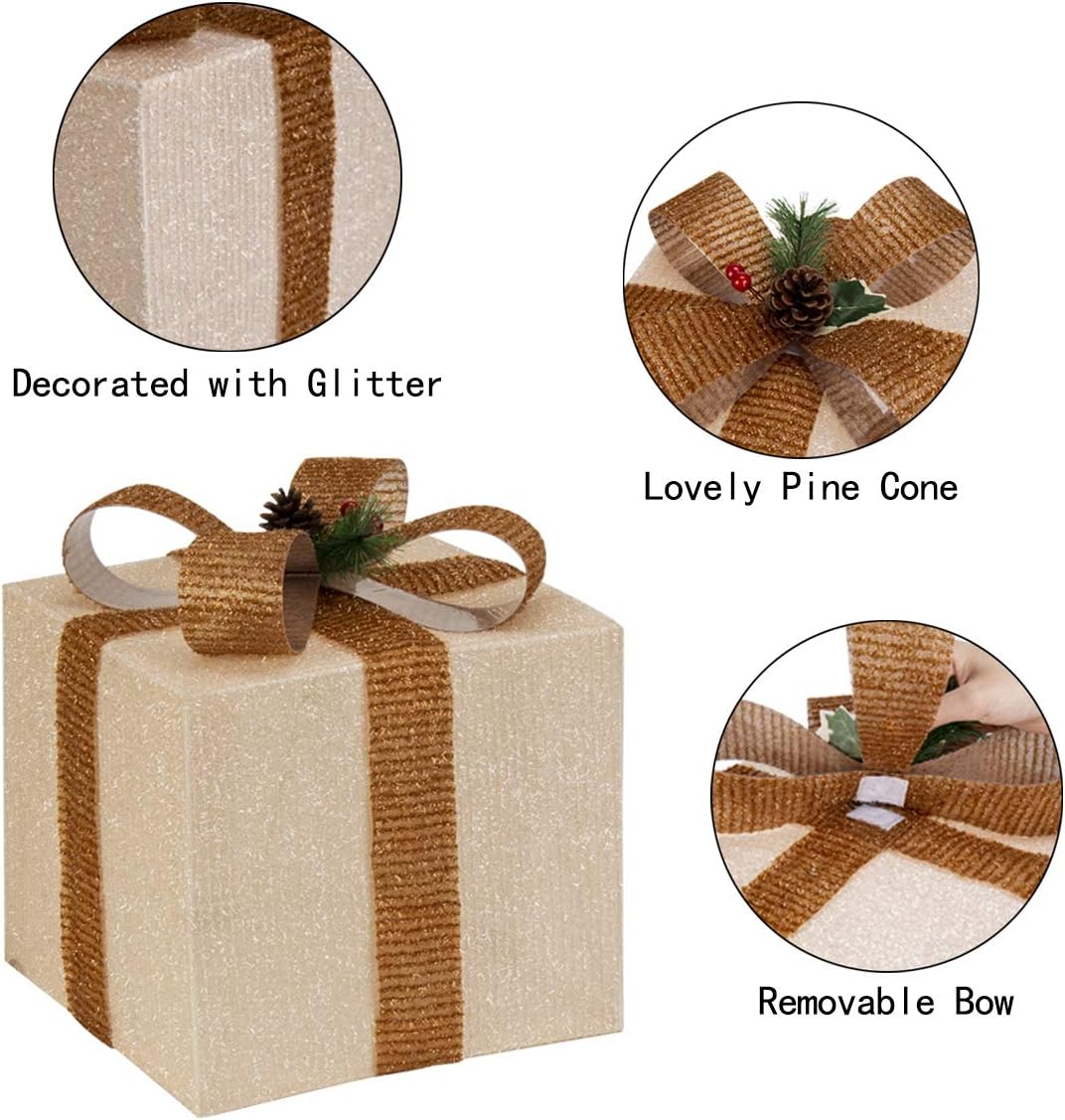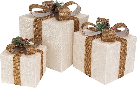 Bianco Gigalumi Set Da 3 Scatole Regalo Illuminate Scatole Led Pre Illuminate Pacchi Natalizi Illuminati Regali Ornamenti Con Orpelli E Fiocco Per Decorazioni Natalizie Luci Per Interni Decorazioni Per Interni