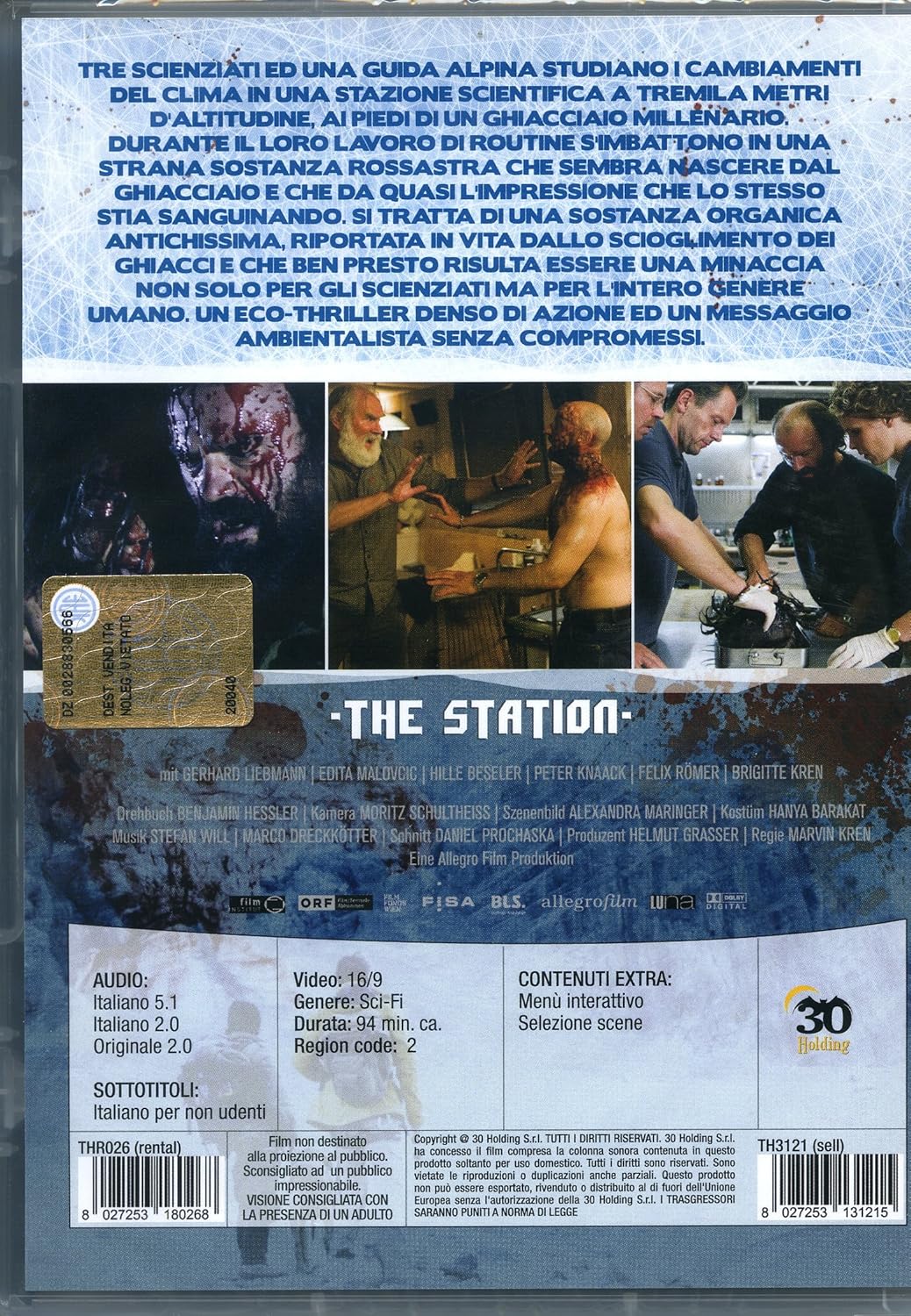 The Station Ghiacciaio di sangue (Blutgletscher), regia di Marvin Kren (13) Im weißen Rössl Wehe Du singst!, regia di Christian Theede (13) Da muss Mann durch, regia di Marc Rothemund come Thomas Lee (15) V8 La sfida dei Nitro (V8 Die Rache der Nitros), regia di Joachim Masannek (15) Party Hard Die Young, regia di Dominik Hartl (18). Ghiacciaio di sangue (The station), horror austriaco del 13 Dispo nibile su Prime video Un gruppo di scienziati scopre che da un ghiacciaio alpino sta fuoriuscendo uno strano liquido con caratteristiche mutagene. Prova ALTRI LINK Mixdrop 4K Speedvideo Mixdrop Streamtape Wstream Download Devi essere loggato per visionare o scaricare il film La registrazione è gratuita!.