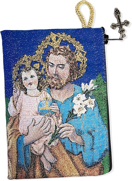 Amazon Com Icon Pouch Tapestry Reversible Saint Joseph Icon Rosary Pouch Case Keepsake Holder 5 3 8 X 4 Inches By World Faith Everything Else