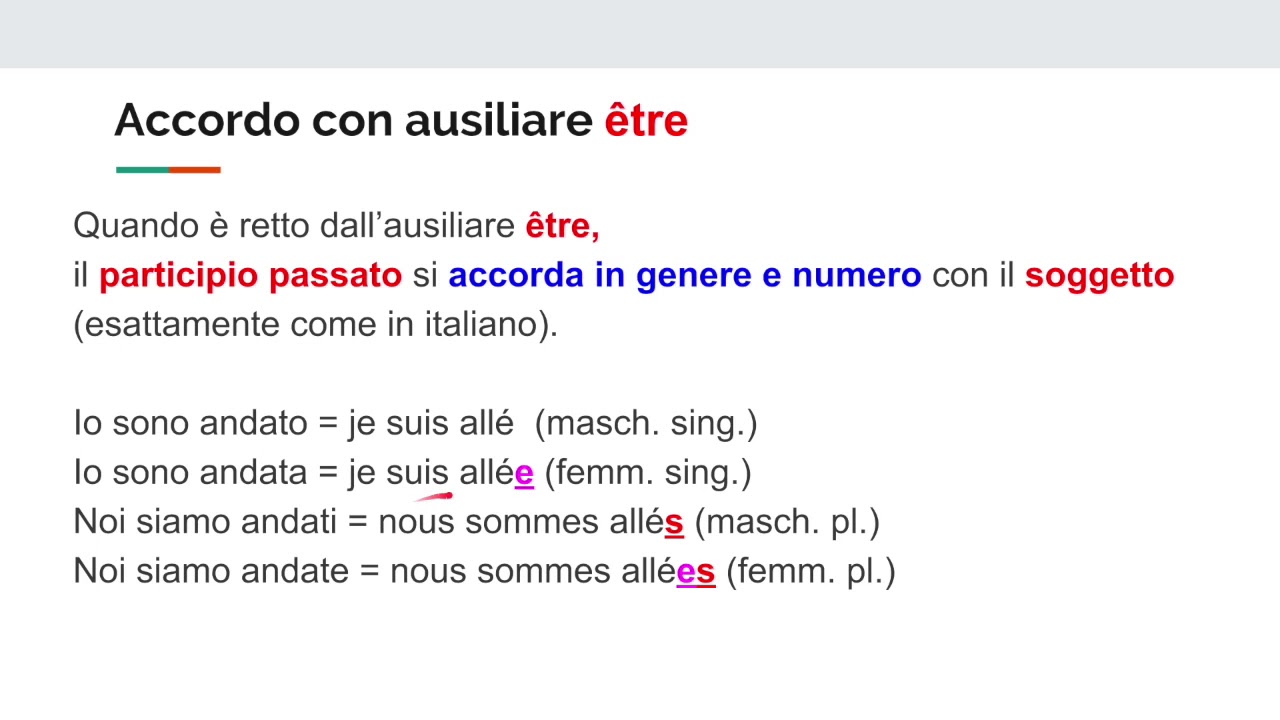 #frenchwithvincent #francese #francia Semplicemente il miglior siteto su Internet impara il francese http//wwwfrench4menet Impara parole francesi nella vi. Accordo del participio passato francese Appunto di grammatica francese che affronta uno dei problemi più ostici della grammatica francese l'accordo del participio passato con il verbo etre o avoir. GLI EMOZIONI verbi essere e avere VERBO ESSERE/AVERE Verbi Essere e Avere VERBI ESSERE E AVERE.