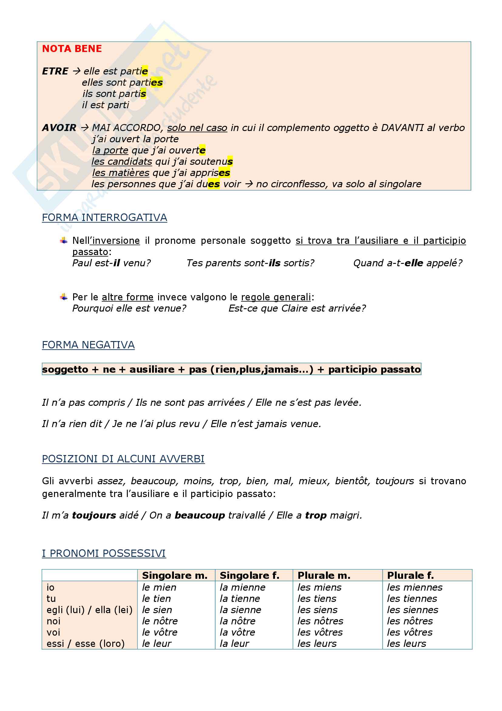 Lingua Francese 1 Schemi Grammatica Docsity