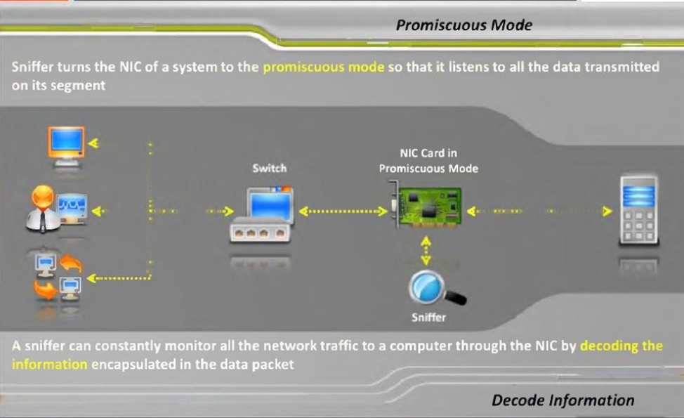 This function is what tells the Wifi adapter in our ESP32 that it should be in promiscuous mode In that same setup function, we are also calling ‘esp_wifi_set_promiscuous_rx_cb’ with a reference to our ‘sniffer’ function This is telling the ESP32 to run this function every time it reads a frame, passing in the information for that frame. A packet sniffer might be able to see traffic on an entire network or only a certain segment of it, depending on how the network switches are configured On wireless networks, packet sniffers can usually capture only one channel at a time unless the host computer has multiple wireless interfaces that allow for multichannel capture. Kismet is a packet sniffer, network detector and intrusion detection system for wireless local area networks It works with any WiFi card, which supports rfmon mode It passively collects packets to identify networks and detect hidden networks It can also sniff a, b, g, and n traffic.