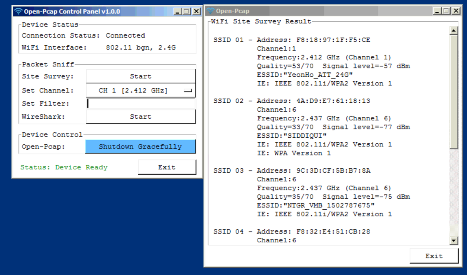 This is my another example of simple and inexpensive WiFi packet analyzer (also known as a WiFi sniffer) The heart of this project is ESP66 WiFi module which is able to work in a promiscusous mode This module allows IEEE network packets capturing for further analyzing. Product description This is a tool to sniff bgn WiFi packets over the air with single USB dongle like AirPcap for all Windows platform at the fraction of the cost It is using OpenWRT based Micro Router (USB dongle) and Python/Tikinter based Windows GUI program to capture WiFi packets and display in Wireshark in real time. The WiFi “signal sniffer” can collect data including a device’s MAC and IP addresses and its security encryption protocol such as WP, WPA and even WEP WEP is an outdated and flawed encryption standard that some people still use, Walker said, despite its welldocumented vulnerabilities.