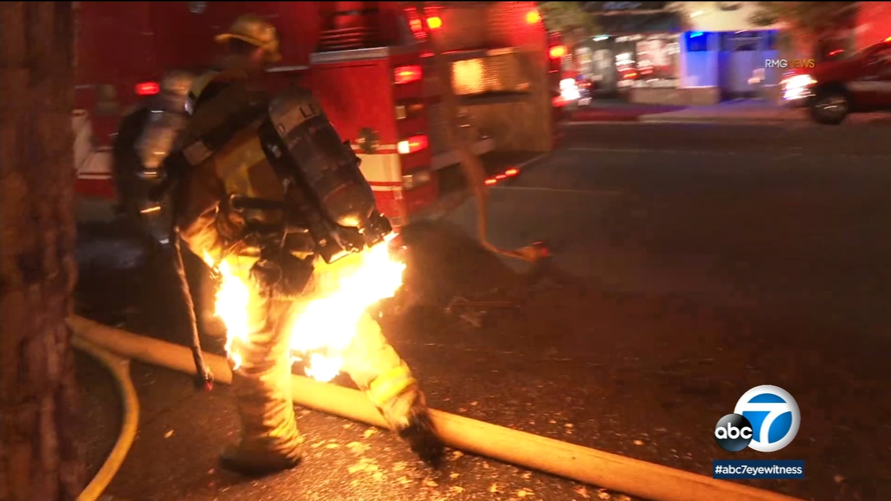 Firefighter Partially Engulfed In Flames While Battling Structure Fire In Sherman Oaks Video Abc7 Los Angeles