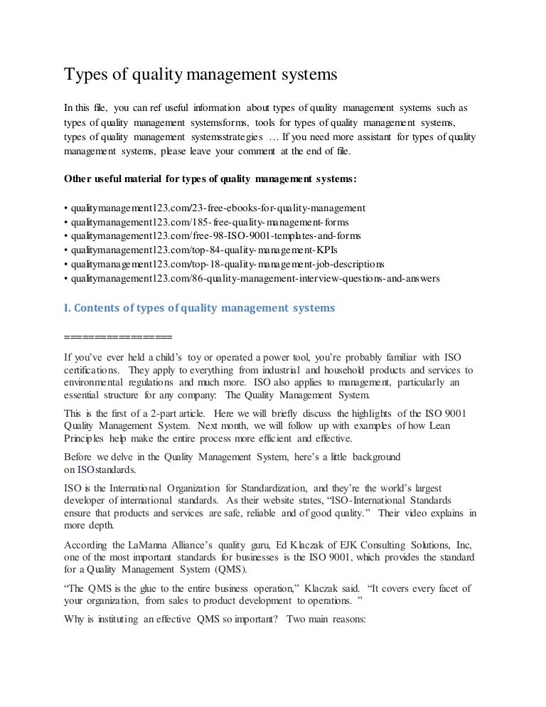 Types Of Quality Management Systems