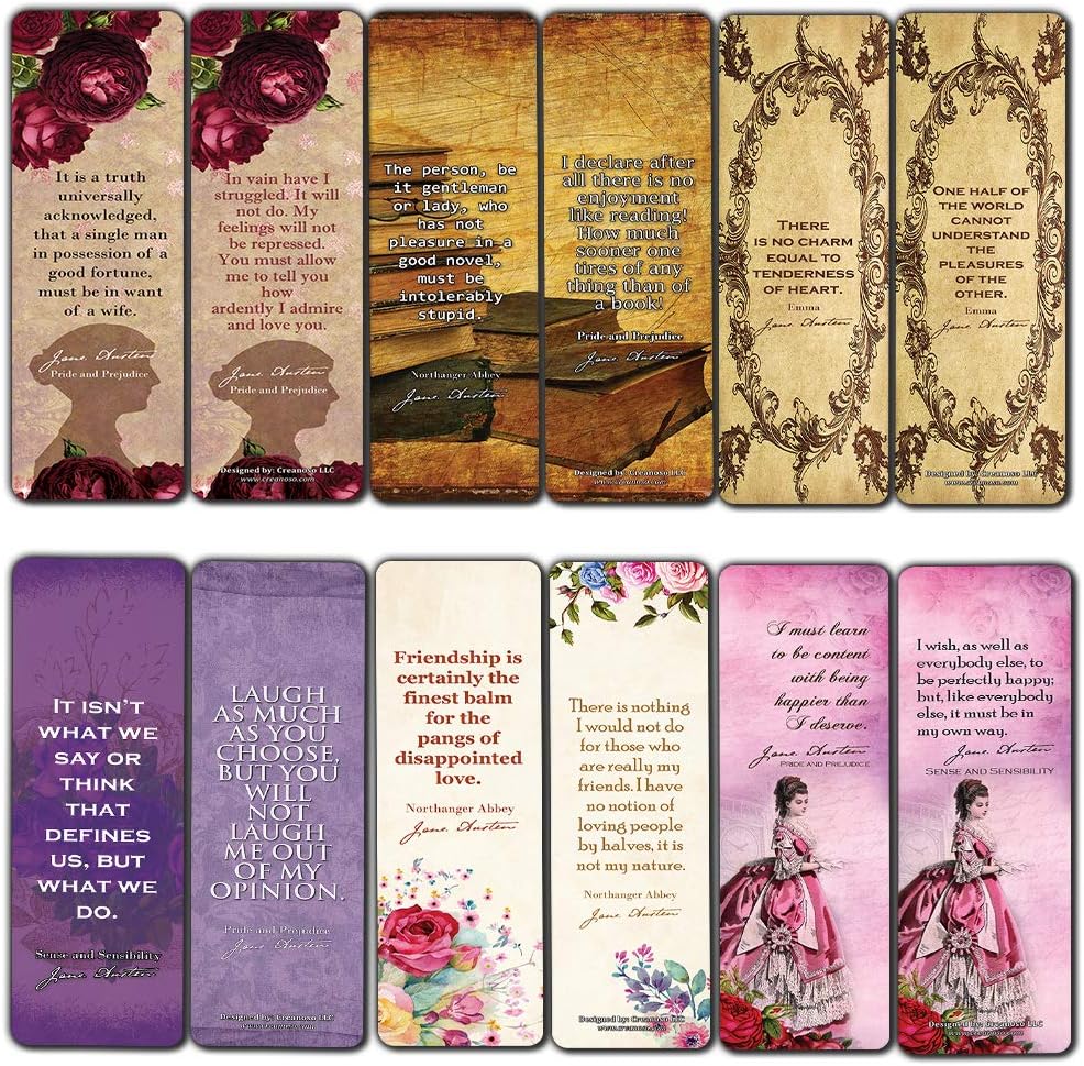 Amazon Com Jane Austen Collection Bookmark Cards 60 Pack Vintage Classics Book Quotes Pride And Prejudice Love Friendship Bookish Literary Gifts For Women Teens Girls Kids Office Products