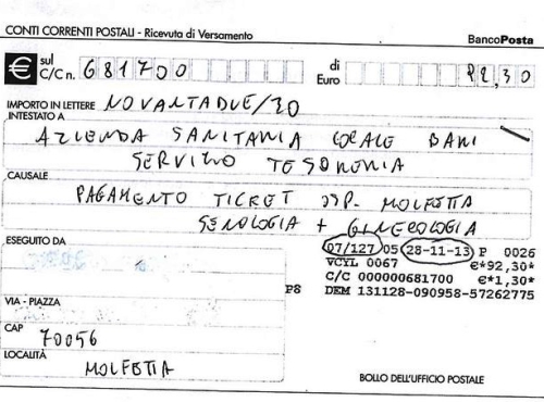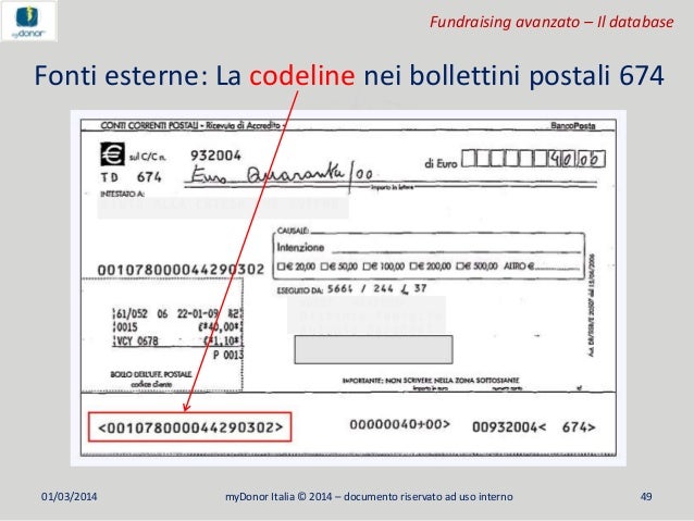 Devi dare il numero in alto a sinistra che porta una / nel centro (es 38/150) che indica l'ufficio postale presso il quale hai effettuato il versamento e il VCY oltre naturalmente la data Ogni VCY è univoco presso lo sportello in quella data 0 0. Specifiche attuative dei codici identificativi di versamento, riversamento e rendicontazione versione 121 giugno 16 Pag 7 di 23 PREMESSA Il decretolegge 18 ottobre 12, n 179 convertito, con modificazioni, dalla legge 17 dicembre. Devi pagare con un bollettino postale non pu essere telematica (tranne qualche rarissimo caso) Per eliminare la carta e passare al flusso digitale necessaria una rivoluzione Se ci avviene, gli adempimenti per il cittadino crescono si deve attrezzare con un pc collegato ad internet,.