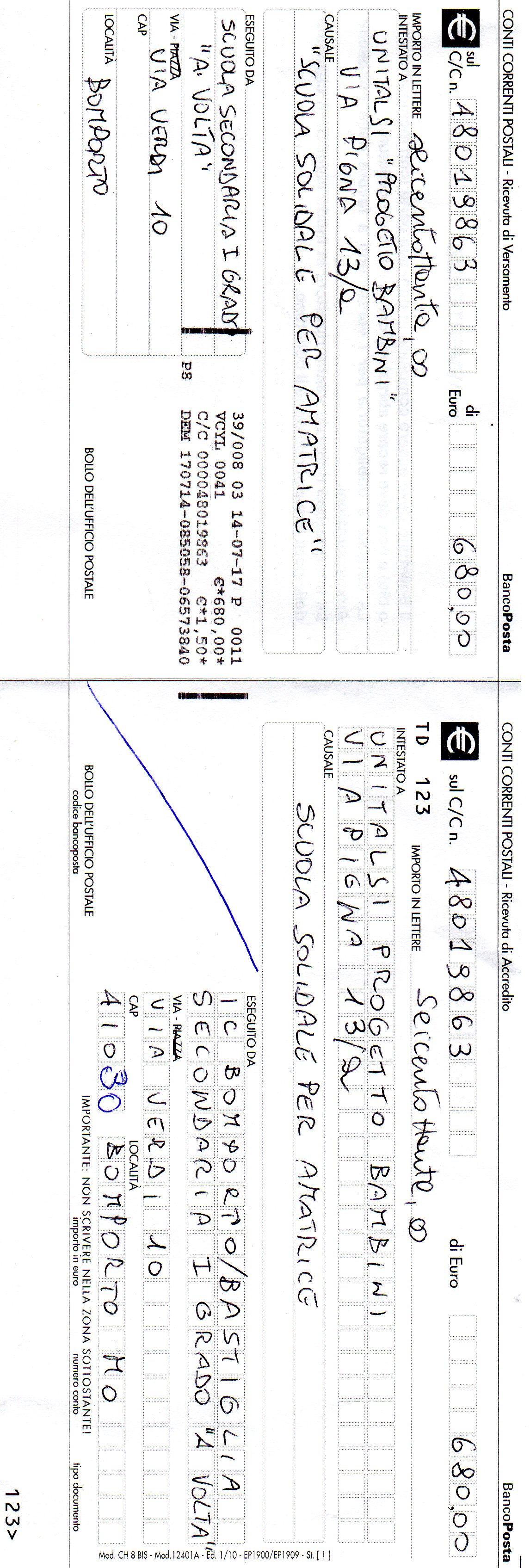 È possibile richiedere la copia del bollettino pagato tramite apposita richiesta in ufficio postale Le condizioni economiche del servizio sono sul FI “Pagamento bollettino di conto corrente postale” Se il pagamento è stato effettuato dalla pagina di Posteit, la ricevuta sarà consultabile dalla sezione Pagamenti/Ricevute dopo il login. See posts, photos and more on Facebook. BOLLETTINO POSTALE C/C postale N 6023 Intestato a Associazione AMKA Onlus Scarica qui il bollettino COME USIAMO LE TUE DONAZIONI AMKA destina l’ 81 % dei fondi raccolti ai progetti di sviluppo nella Rep Dem del Congo e in Guatemala, nei diversi settori educazione, sanità di base, malnutrizione, attività di sensibilizzazione.