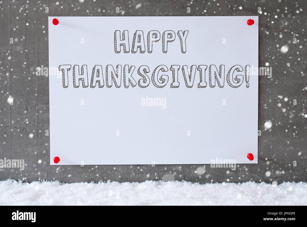 Etichetta Con Testo In Inglese Felice Ringraziamento Urbano Moderno E Parete In Cemento Come Sfondo Sulla Neve Con I Fiocchi Di Neve Foto Stock Alamy