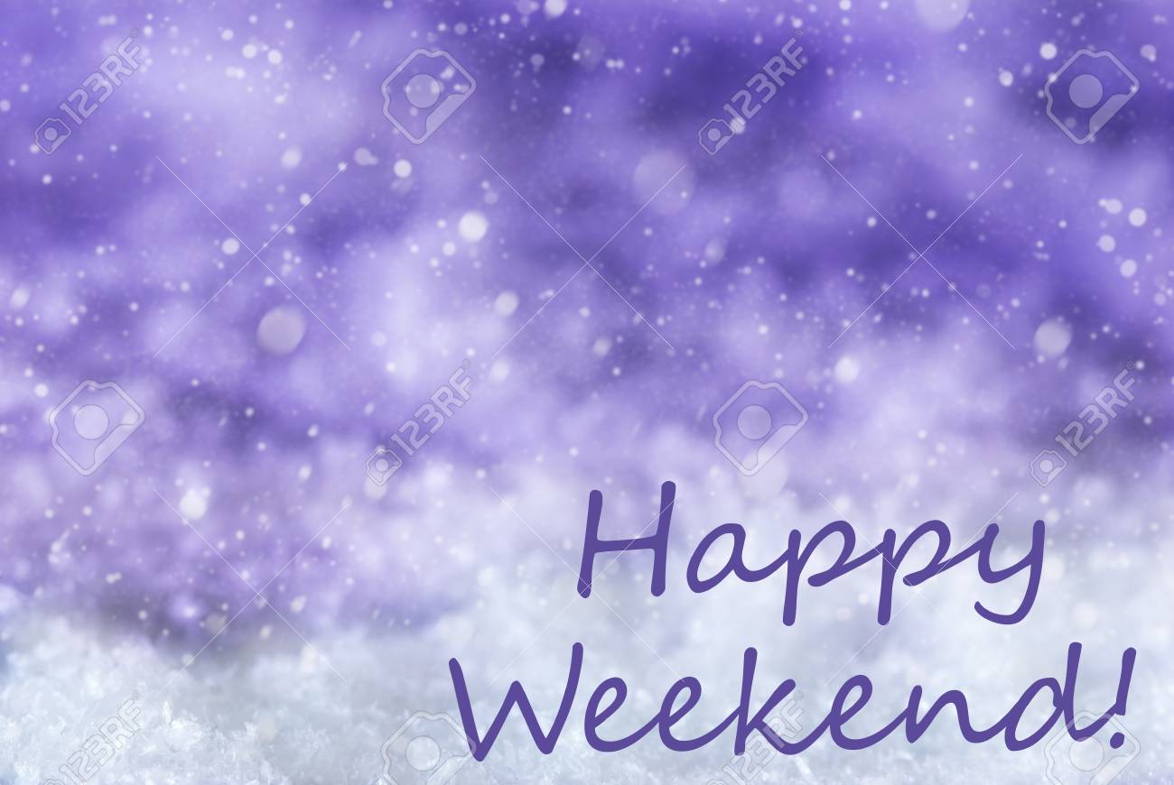 Immagini Stock Testo Inglese Happy Weekend Priorita Bassa O Struttura Viola Di Natale Con Neve E Fiocchi Di Neve Copia Lo Spazio Per Il Tuo Testo Qui Image