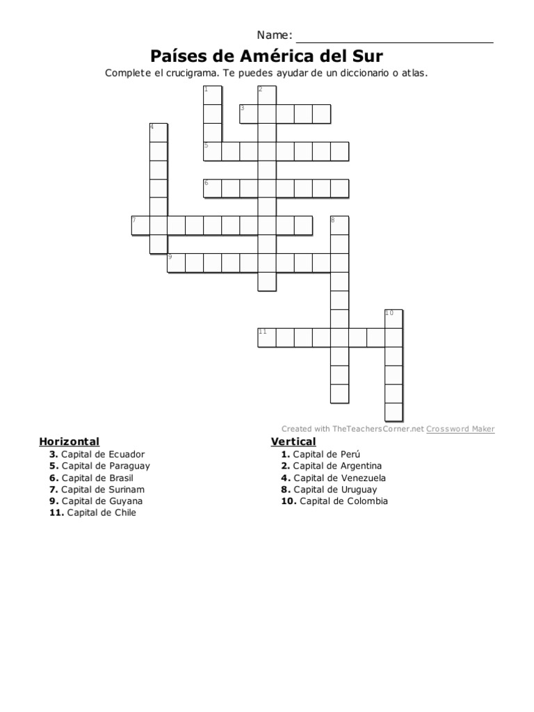 Paises De America Del Sur Complete El Crucigrama Te Puedes Ayudar De Un Diccionario O Atlas