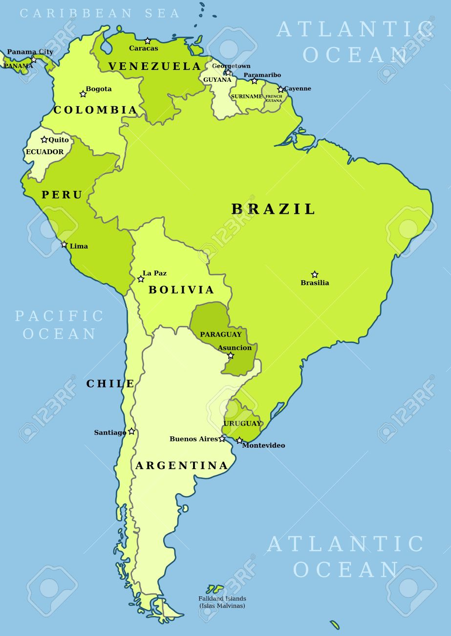 Mapa De America Del Sur Division Politica Ciites Paises Y Capitales Los Paises Son Objetos Separados Puede Cambiar El Color De Todos Los Paises Ilustraciones Vectoriales Clip Art Vectorizado Libre De