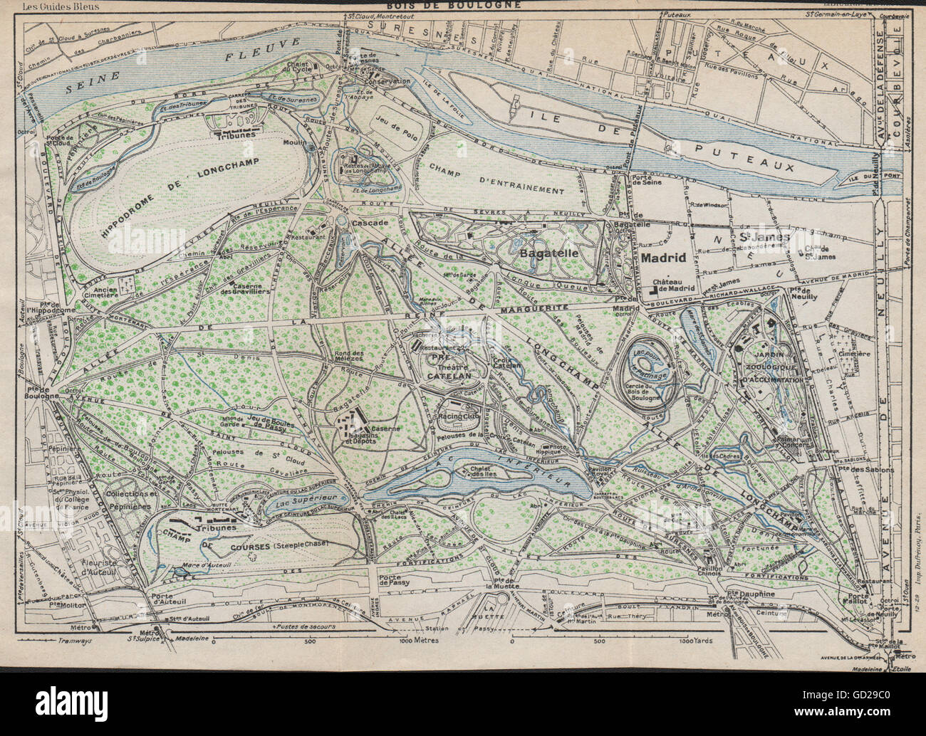 Bois De Boulogne Vintage Map Plan Paris 1927 Stock Photo Alamy