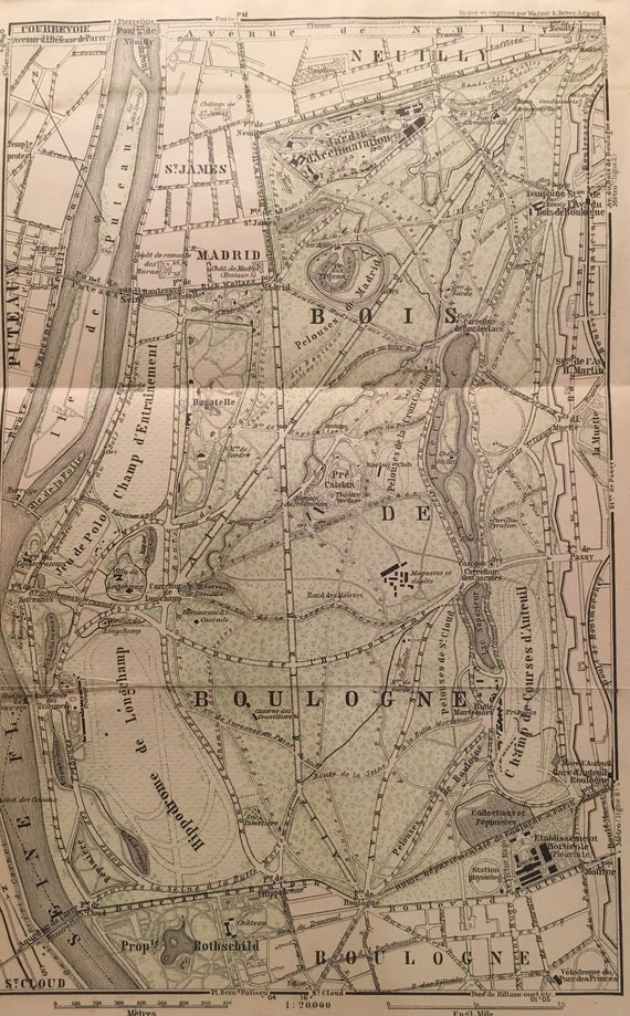 Old Map By Fer Le Bois De Boulogne Paris