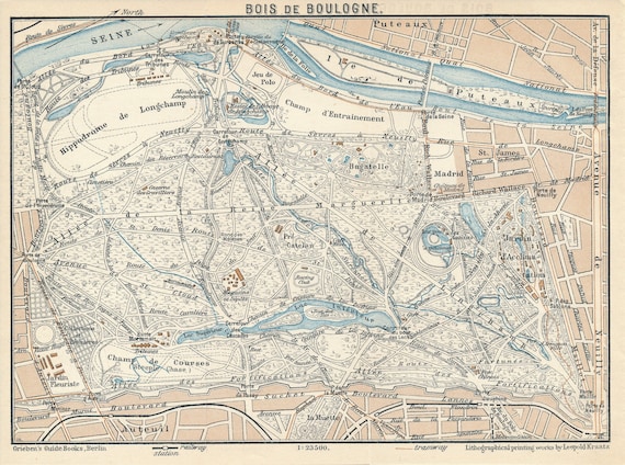 1910 Bois De Boulogne Paris France Antique Map Etsy