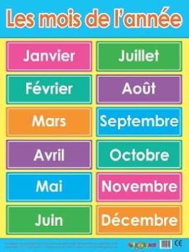 Impara a dire i nomi dei mesi e delle stagioni in francese Nota che i nomi dei mesi non iniziano per lettera maiuscola Mesi. Oggi vediamo insieme quanti e quali sono i mesi dell’anno avendo cura di precisare anche quanto durano in termini di giorni Intanto diamo una definizione precisa di mese si tratta di una suddivisione dell’anno che ha la medesima radice a livello etimologico della parola inglese moon e di quella tedesca Mond, entrambe che significano lunaNella stragrande maggioranza dei calendari il mese. MESI DELL'ANNO IN FRANCESE Clicca sul quadrato in basso a destra per ingrandire.
