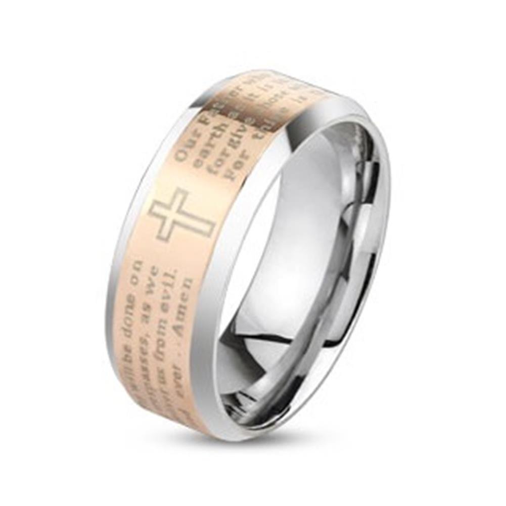 R M4058r Con Preghiera Padre Nostro In Lingua Inglese Colore Argento E Oro Rosa Anello In Acciaio Inox Chirurgico 316l Paula Fritz Anelli Gioielli