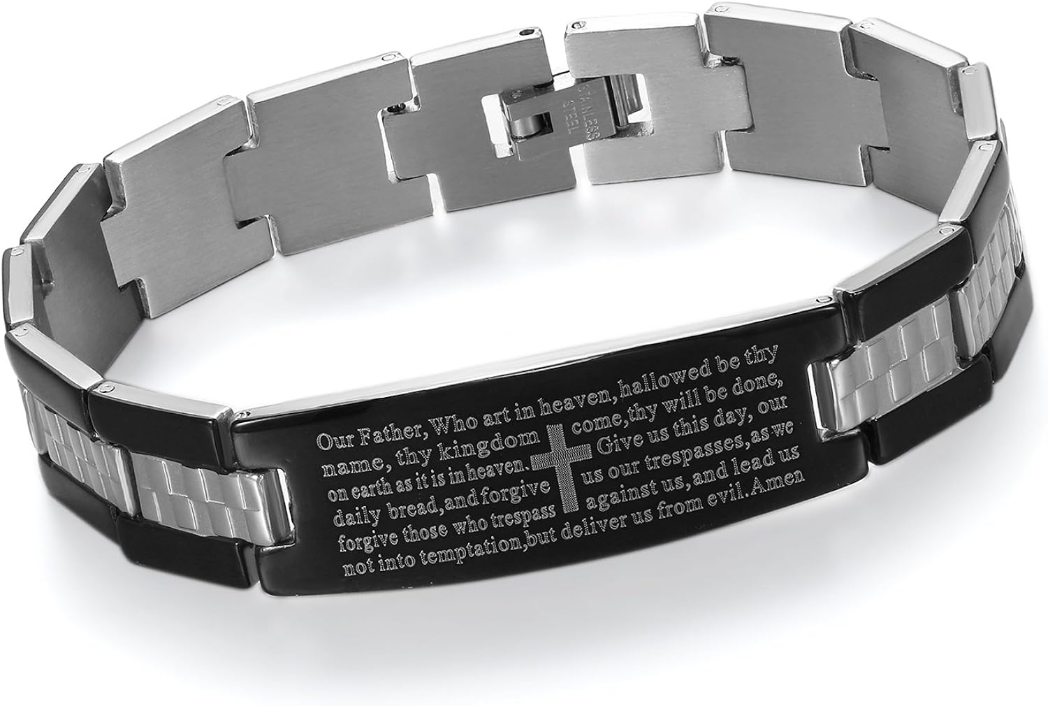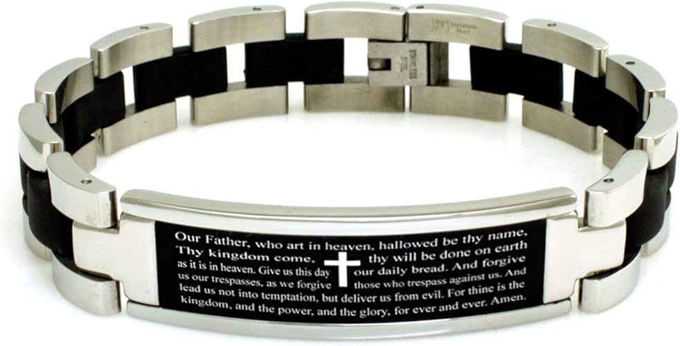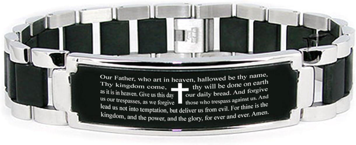 Uomo Cupimatch Di Colore Nero E Argento Bracciale Da Uomo In Acciaio Inox Con Incisa La Preghiera Del Padre Nostro In Lingua Inglese Gioielli Training C Co Jp
