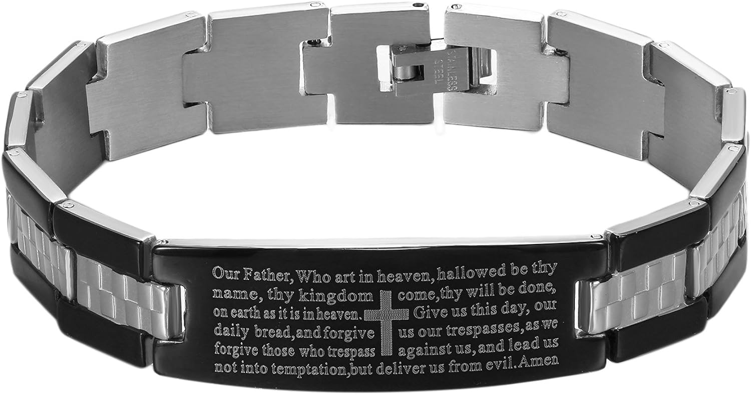 Jewelrywe Bracciale Preghiera Da Uomo Gioielli Religiosi Cristianesimo Padre Nostro Bibbia In Inglese Regalo Natale Croce Amazon It Gioielli
