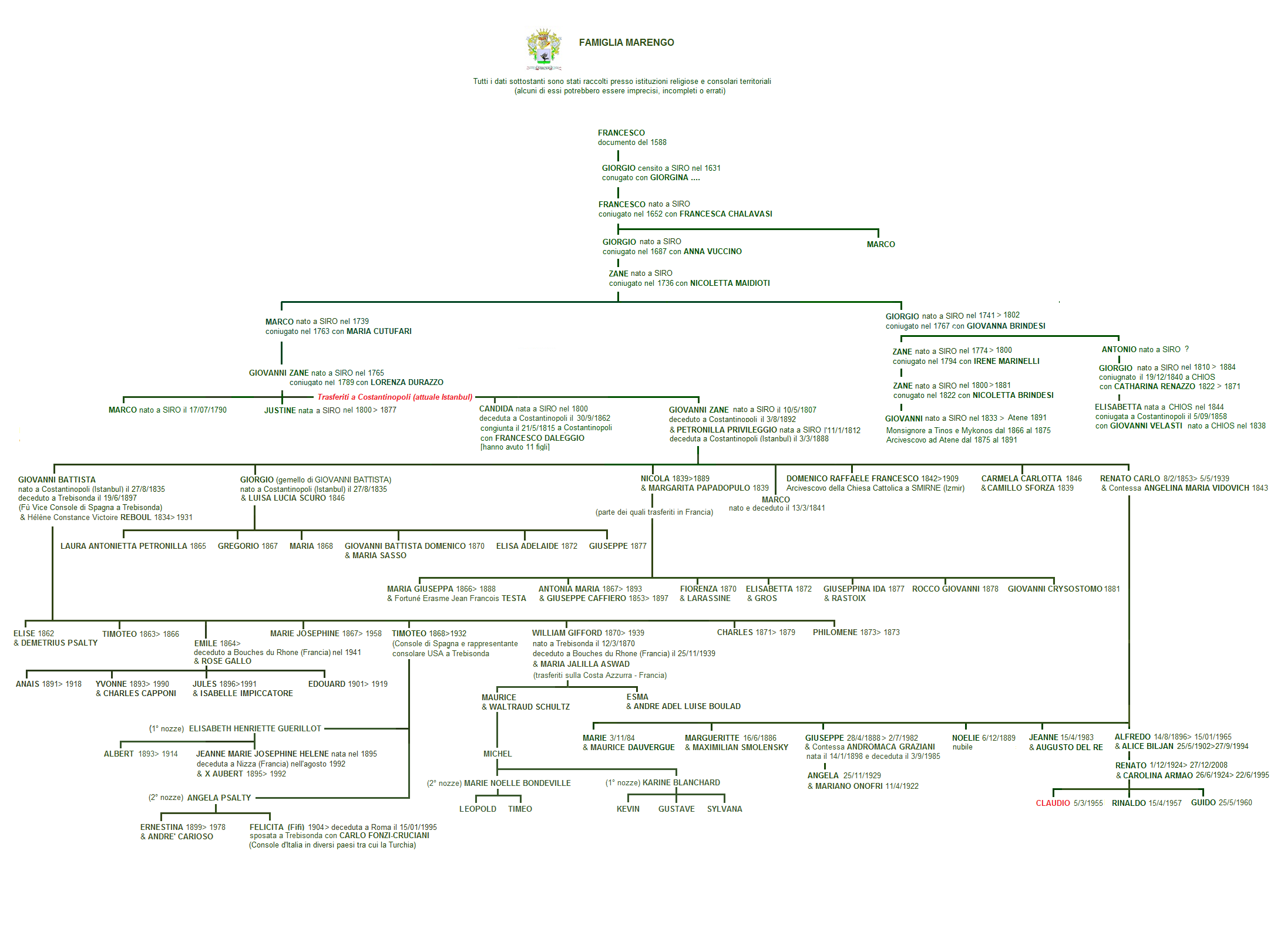 Scopri la storia della tua famiglia Inglese Inghilterra (Yorkshire) 50% Scandinava Norvegia (Viken) % Italiana Italia (Abruzzo) 15% Nordafricana 10% 2 altre 5% Crea il tuo albero genealogico online Il viaggio nel tuo passato inizia con il tuo albero genealogico e crearne uno su MyHeritage è molto semplice Aggiungi nomi, date. Copie del suo albero genealogico possono essere trovate nel Museo Britannico e nel Castello di Windsor Copies of her genealogical tree can be found in the British Museum and in Windsor Castle Al genealogista italiano Mauro Risani da Cairo Montenotte per suo contributo con l' albero genealogico di Galileo Galilei. Famiglia family tree fæmili trii albero genealogico father faadhë padre;.
