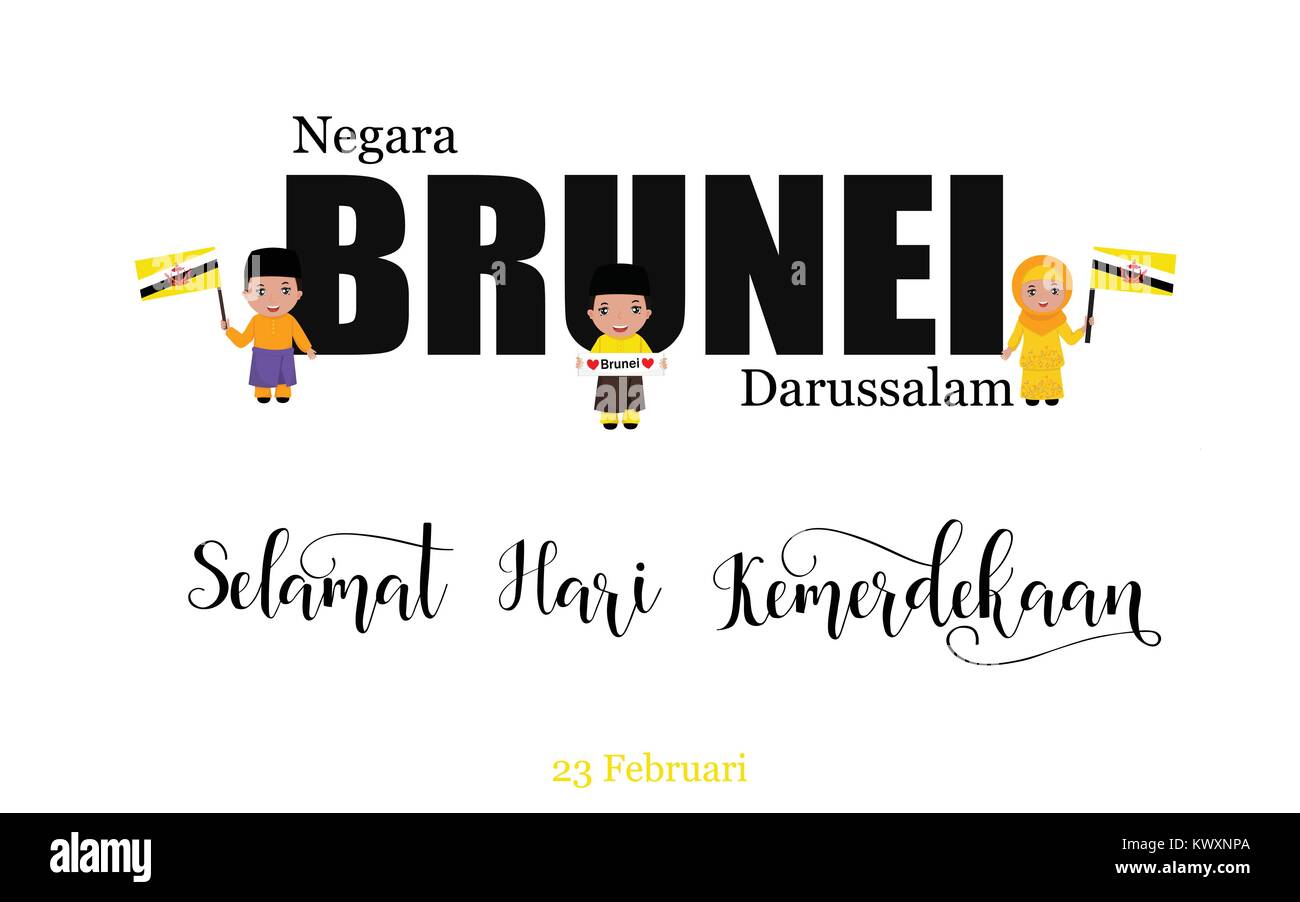 Brunei Giornata Nazionale Della Scheda Messaggi Di Saluto Logo Per Bambini Inglese Nazione Del Brunei Felice Giorno Di Indipendenza Febbraio 23 Immagine E Vettoriale Alamy