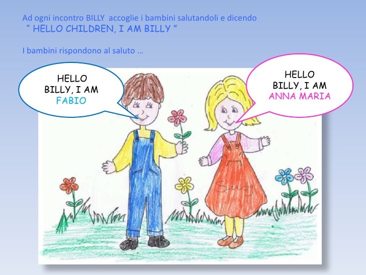 Per favorire la conoscenza delle frasi per presentarsi e salutare in inglese possiamo organizzare delle drammatizzazioni in classe invitando i bambini a ripetere le formule per salutarsi e presentarsi Successivamente proponiamo le schede.