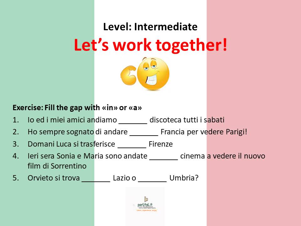 Il Verbo Andare Si Usa Insieme Alla Preposizione In Con I Nomi Di Nazioni Continenti Regioni I Nomi Di Alcuni Luoghi I Nomi Di Ne Grammatica Impar