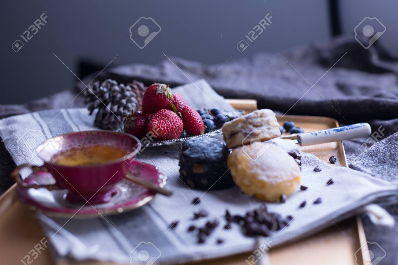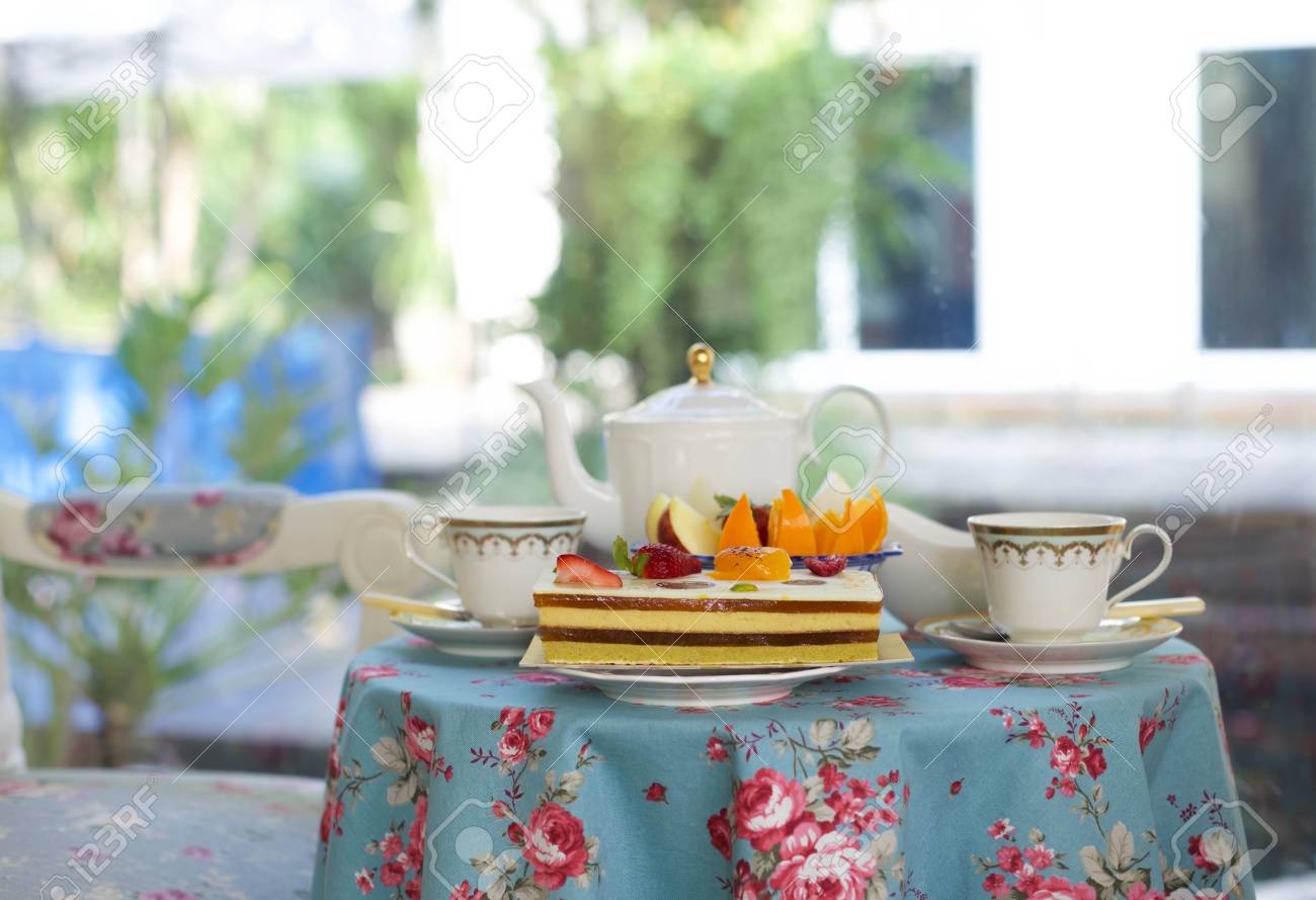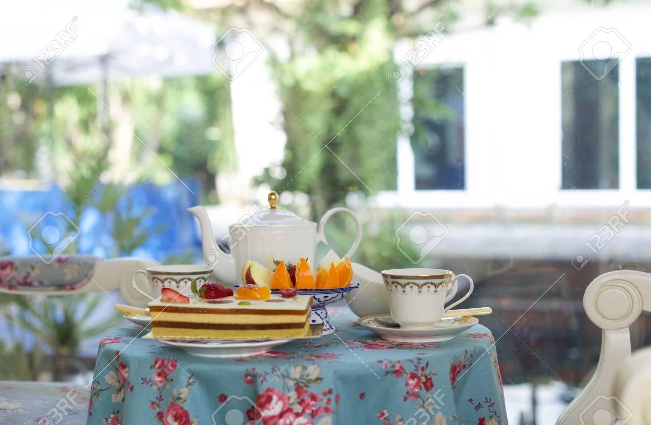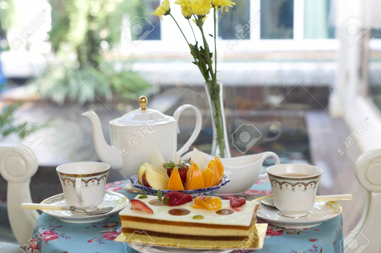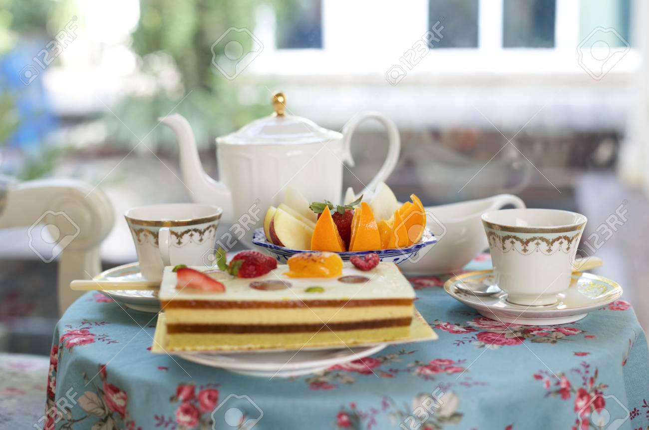 Immagini Stock Torte Da Forno E Frutta Fresca Con Te Inglese All Ora Del Te Image