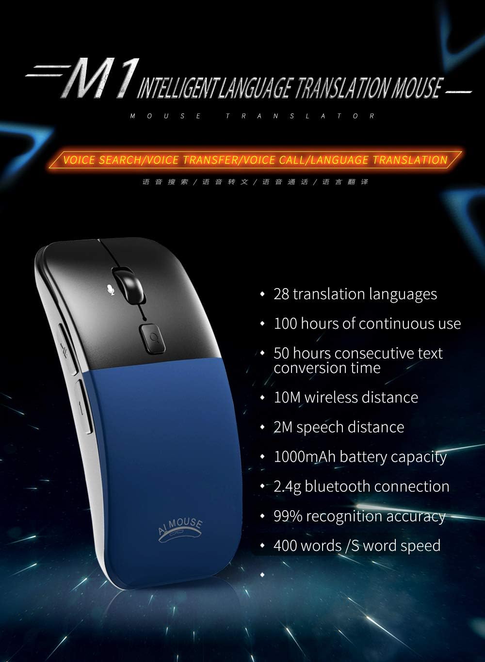 Docooler Ai International Voice Mouse Wireless Traduzione Mouse Mouse Inglese Cinese Traduzione Sintonizzatore Vocale Blu Amazon It Elettronica