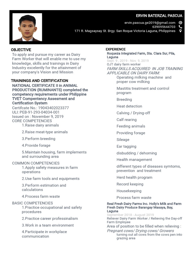 Customise the template to showcase your experience, skillset and accomplishments, and highlight your most relevant qualifications for a new farm worker job. 365 Farm Worker jobs available in California on Indeedcom Apply to Utility Worker, Farm Worker, Stocker and more!. Dairy farm worker at Linohon Backyard Dairy Farm (Assisted by Philippines New Zealand Dairy Project) from July 14, 12 up to August 8, 14 with duties and responsibilities including Milking cows (Holstein Friesian Sahiwal / Jersey breed), Feeding, Animal Health, Calving, Forage planting, Breeding, Husbandry Practice, and Record Keeping.