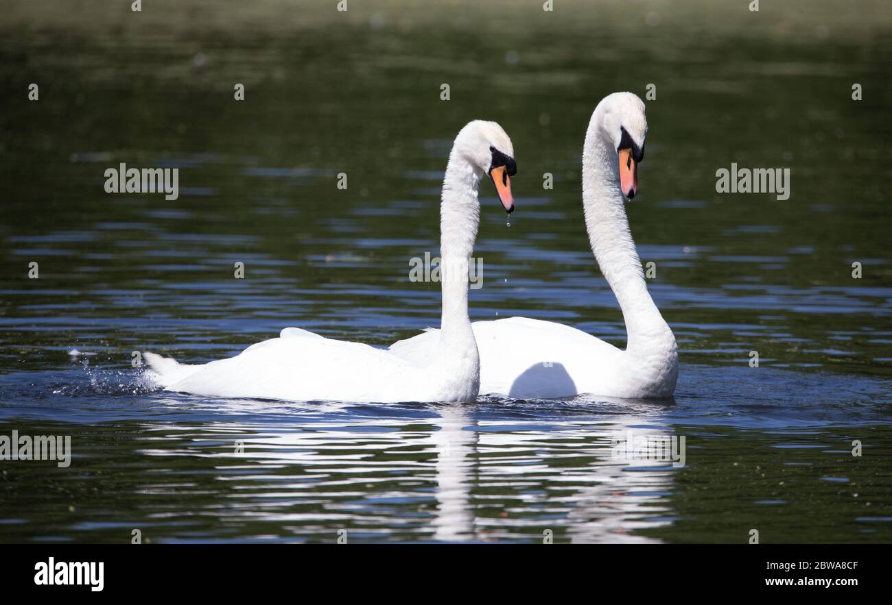 Coppia Di Cigni In Un Parco Inglese Fotografie Stock E Altre Immagini Di Ambientazione Esterna Istock