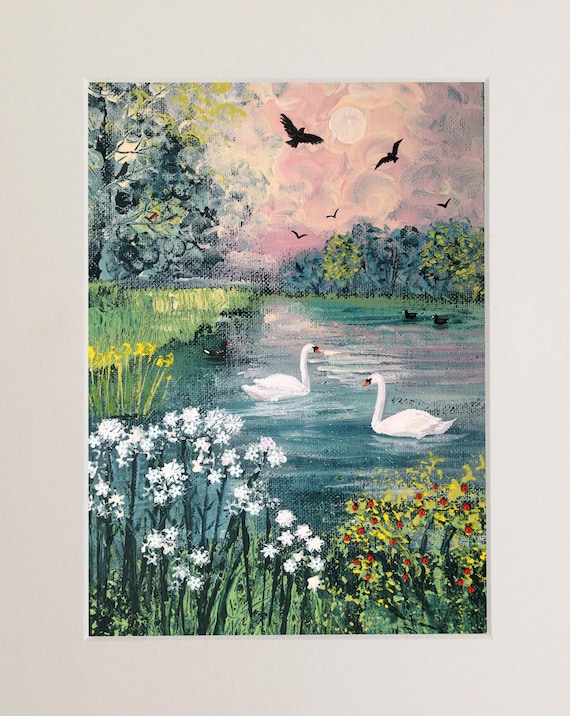 Stampa Montata Del Paesaggio Inglese Con Fiume E Cigni Da Un Etsy