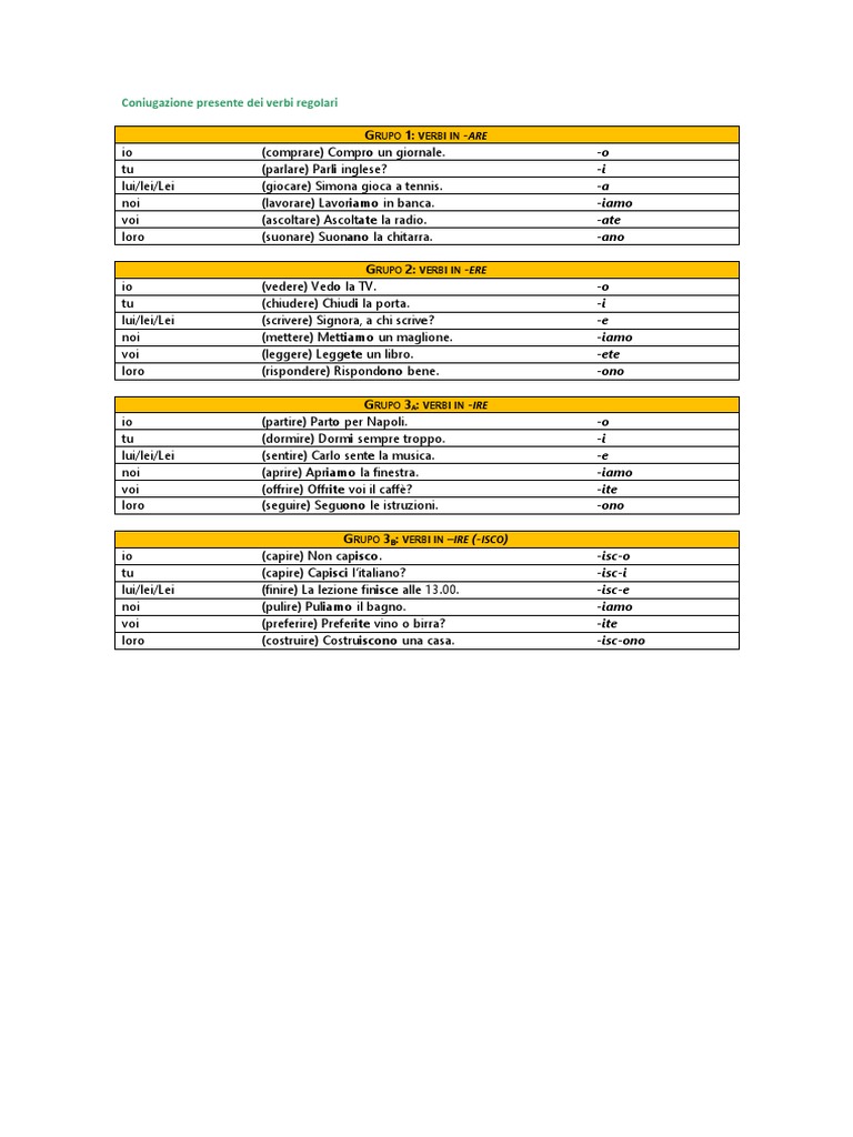 Coniugazione Verbi Italiani Coniugazione Italiano