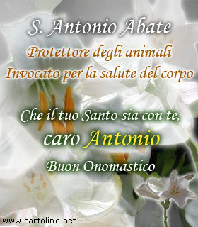 Santo Antonio Abate, detto anche sant'Antonio il Grande, sant'Antonio d'Egitto, sant'Antonio del Fuoco, sant'Antonio del Deserto, sant'Antonio l'Anacoreta (in greco antico Ἀντώνιος, Antṓnios, in latino Antonius, in copto Ⲁⲃⲃⲁ Ⲁⲛⲧⲱⲛⲓ;. 04 gennaio San Gregorio di Langres Vescovo 10 gennaio San Gregorio di Nissa Vescovo dom 17 gennaio Sant' Antonio Abate agiografia completa >> lun 18 gennaio Santa Margherita d'Ungheria Principessa e religiosa agiografia completa >> mar 19 gennaio.