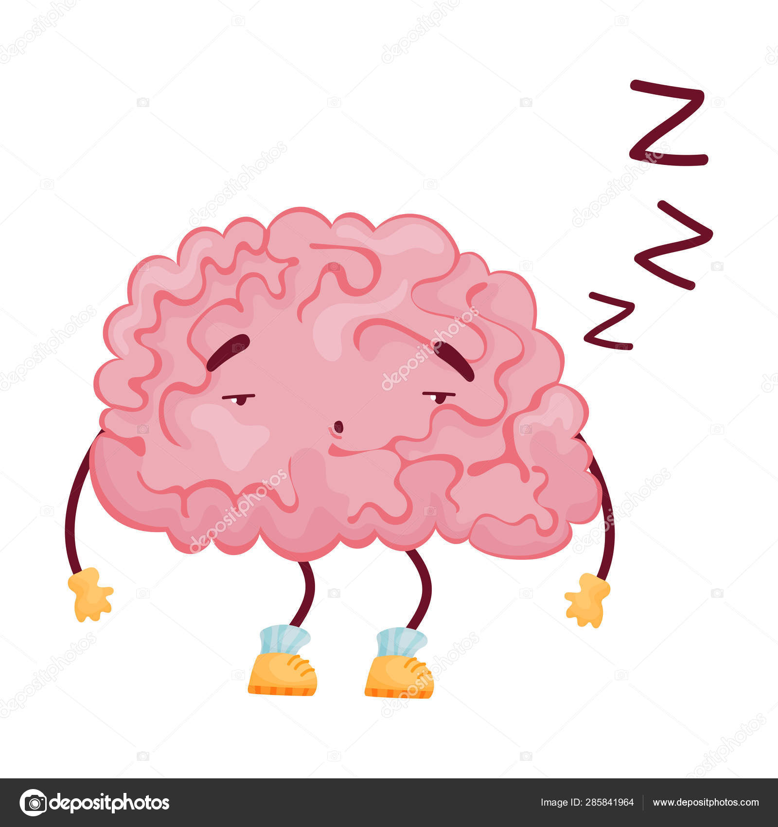 Cervello Stanco Mascotte Cervello Mascotte Sonnolento Illustrazione Stanco Canstock