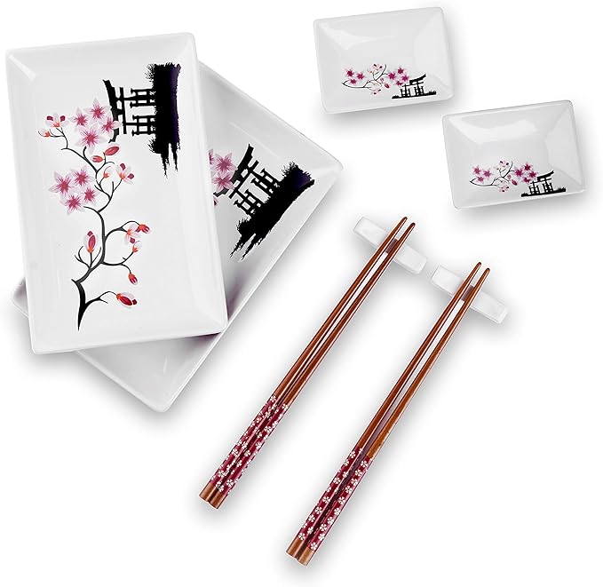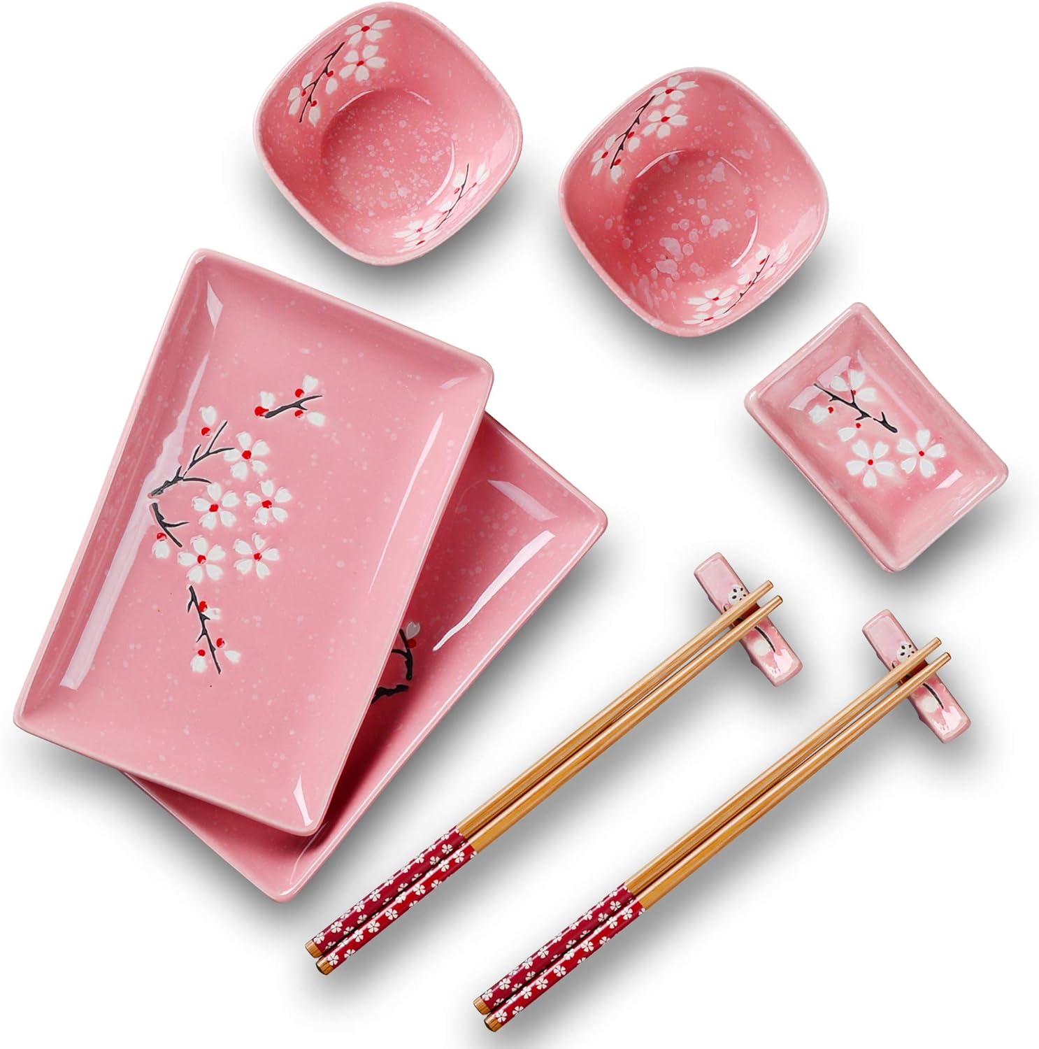 Panbado Set Sushi In Porcellana Regalo Giapponese Set Di 2 Sushi Piatto 2 Bastoncini Ciotoline Salse 2 Poggiabacchette Colore Menta Verde Casa E Cucina Stoviglie