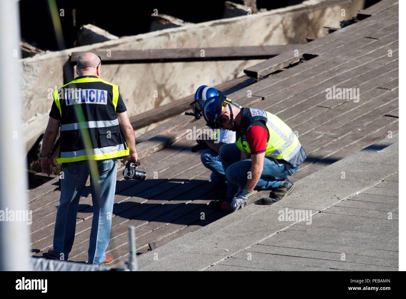 Vigo Spagna 14 Ago 18 Spagnolo Di Polizia Scientifica Membri Ispezionare Un Luogo Dove Un Gateway